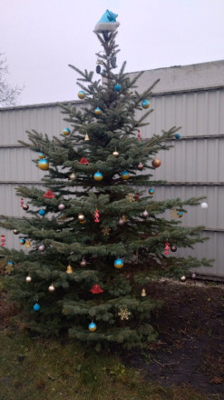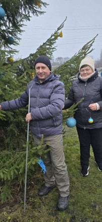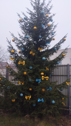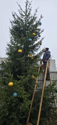 Волонтери прикрасили ялинки на подвір’ї храму в кольорах національного прапора, створивши теплу, світлу й по-справжньому святкову атмосферу.