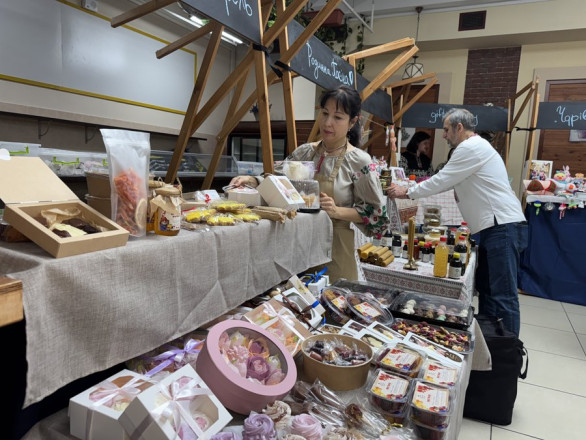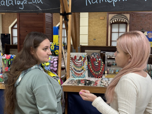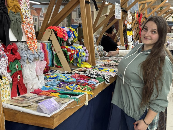 На прилавках — вироби місцевих майстрів: прикраси, іграшки, одяг та солодощі. Все це можна переглянути та за бажанням придбати на етноярмарку цими вихідними у Сумах. Прийшла підтримати місцевий бізнес і пані Оксана.