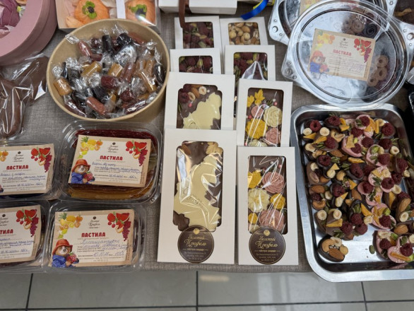 "Тут у мене зефір, пастила, шоколад, цукерки ручної роботи та торти".