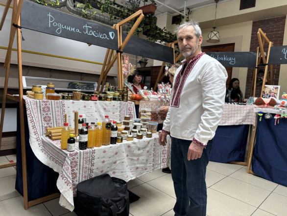 У Сумах організували крафтовий ярмарок. Суспільне Суми"Він хотів після війни займатися бджільництвом, мати власну пасіку. Село було в окупації, тому в нас мед лише різнотрав’я. Асортимент невеликий, бо немає можливості все вивезти — там постійні вибухи".
