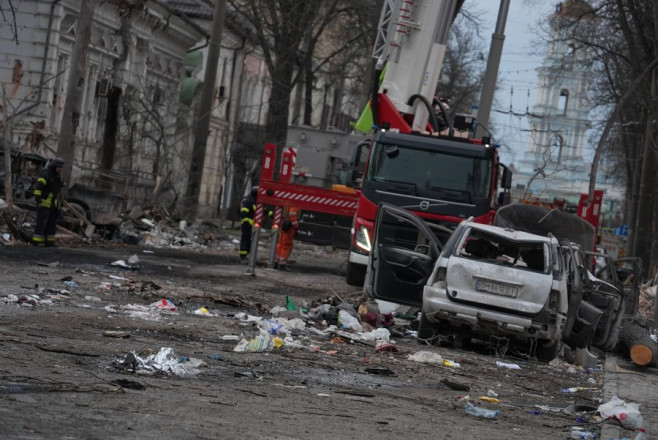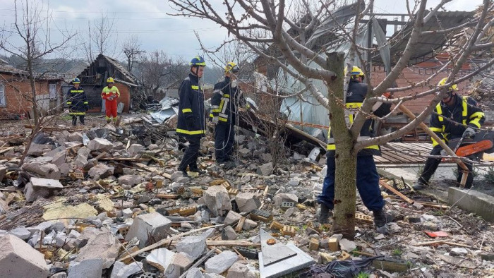 Розбір завалів після вибуху авіаційної бомби у Сумах 7 березня 2022 року. Суспільне Суми