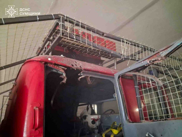 Як повідомили у ГУ ДСНС у Сумській області, унаслідок атаки пошкоджено будівлю та пожежну цистерну.