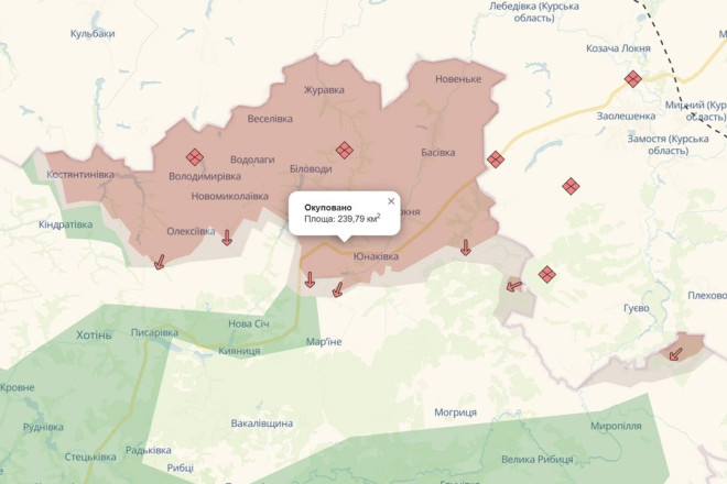 - 28 лютого 2025 року на Сумщині з'явилася "сіра" зона на карті DeepState поблизу села Новеньке Юнаківської громади. 1 березня, згідно з картою, "сіра" зона з'явилася і біля Журавки Хотінської громади, а українські військові перестали контролювати частину Курської області біля Новенького та Журавки.