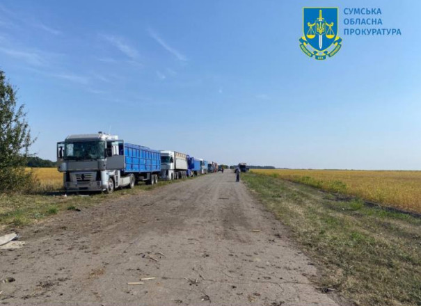 Вчора, 31 серпня, близько 20.30, застосовуючи заборонені міжнародним правом методи ведення війни, ворог завдав ракетного удару по колоні зерновозів, які знаходились на шляху «Суми-Харків» поблизу с. Верхня Сироватка (Сумський район). Про це інформує Сумська обласна прокуратура.