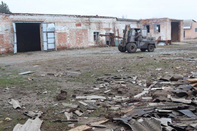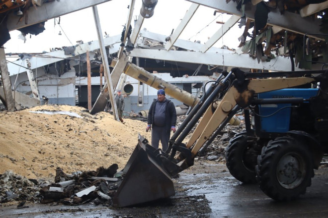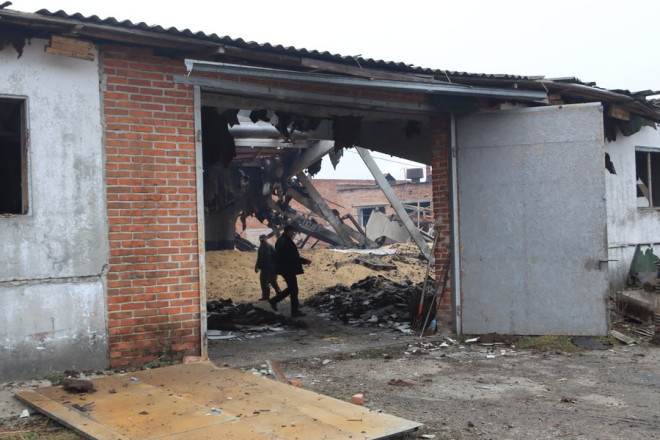 "Двоповерхівка. Складське приміщення, станція техобслуговування і фарбувальна установка чеська там була. Ще у нас було 120 тонн сої. Друзі, знайомі допомагають тут. Пропозиції були допомагати, але ми не хочемо дуже багато збирати тут людей".