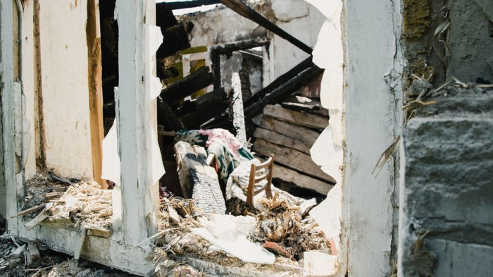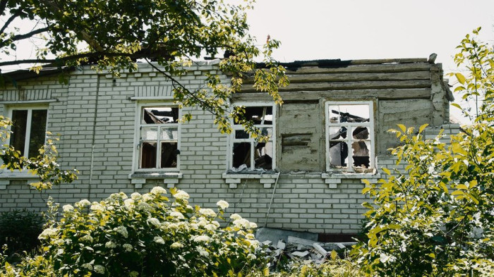 Зруйнований російськими обстрілами будинок у Павлівці на Сумщині, червень, 2023 р. Суспільне Суми/Андрій Юрченя.