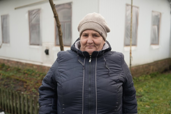“Бачила, як і контора горіла. Сільської ради я не бачила. Як школа горіла, як магазин горів, як горіли хати, сараї, кухні, я це все бачила. Та якщо б я була в селі, може б мене там уже вбило, не знаю. Бо чотири рази отак на руку дрон переді мною крутився. В туалет пішла – упав дрон. Пішла «йолочка» в гору. По хліб пішла, іду з хлібом назад, він переді мною. На город вийшла – то ракета летить, то «шахед»… Оце таке”, – пригадує жінка.