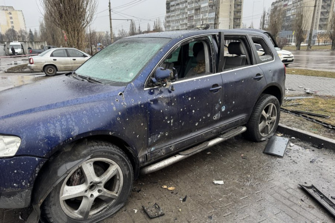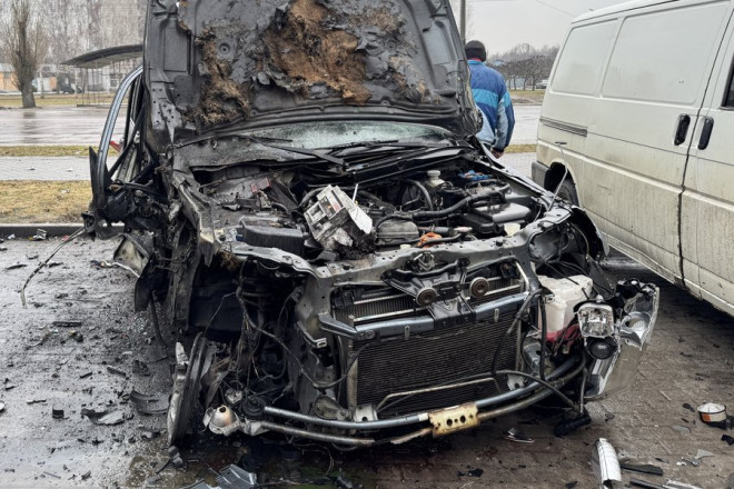 Пан Валерій приїхав поруч із місцем влучання, аби відремонтувати своє авто.
