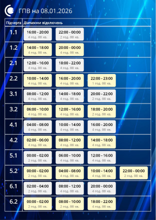 Завтра, 8 січня, в Сумській області, як і у всіх регіонах України, будуть застосовуватись графіки погодинних відключень.