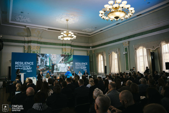 «Сумщина – це північний щит України та Європи. Ми стоїмо на межі, яку ворог намагається прорвати, але водночас будуємо сучасну екосистему стійкості – щоб громади були не лише захищеними, а й розвиненими та комфортними для життя. Разом перетворюємо стійкість на розвиток – заради миру і майбутнього», – наголосив начальник Сумської ОВА Олег Григоров.