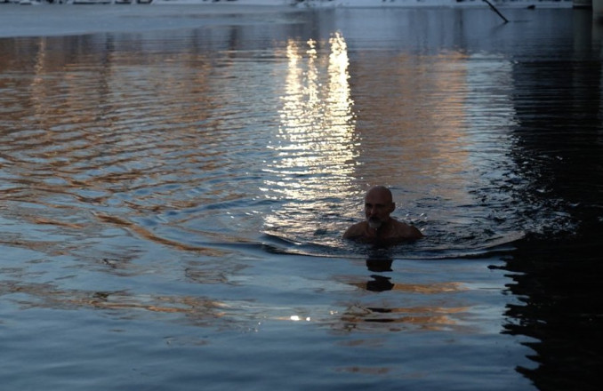 Майже щодня, незалежно від пори року, чоловік пірнає у воду. Говорить: вийшовши з води, рушником не витирається, приймає “снігові ванни”, загартовуючи своє тіло.