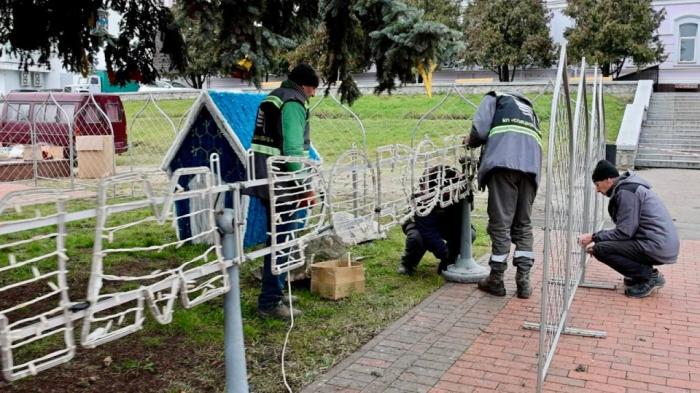 А сьогодні тут для створення святкової атмосфери прикрашають живі ялинки та розміщують різноманітні конструкції-інсталяції, використовуючи наявні матеріали та освітлювальні елементи. Нового не закуповували, крім цифри «6» в інсталяції із зображенням нового, 2026 року.