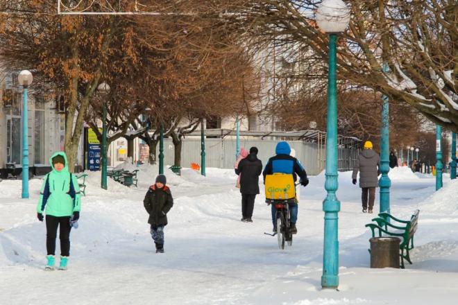 Попри люті морози місто продовжує жити. Хтось поспішає у справах, хтось замовляє їжу додому, а хтось дістає льодянки, тюбінги, санчата, ковзани, лижі.