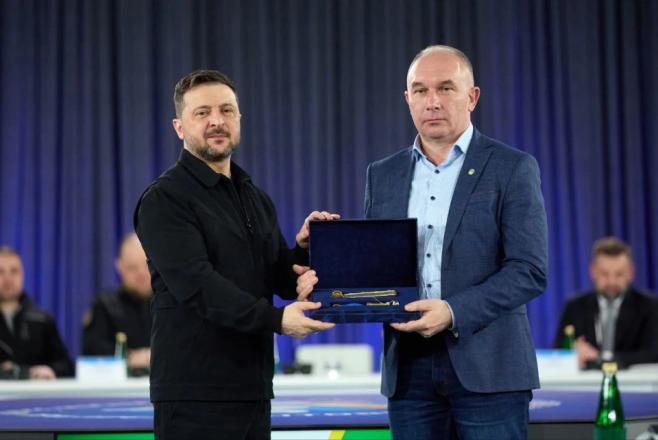 Сьогодні під час Конгресу місцевих та регіональних влад президент України вручив почесні відзнаки «Місто-герой України» керівникам Сум та Тростянця. Нагороди отримали в.о. міського голови Сум Артем Кобзар та мер Тростянця Юрій Бова.