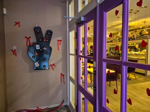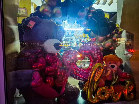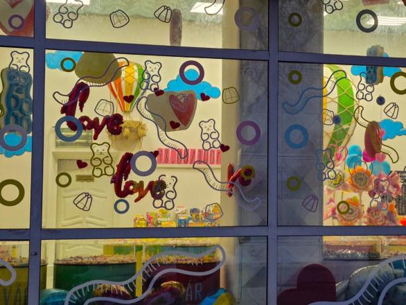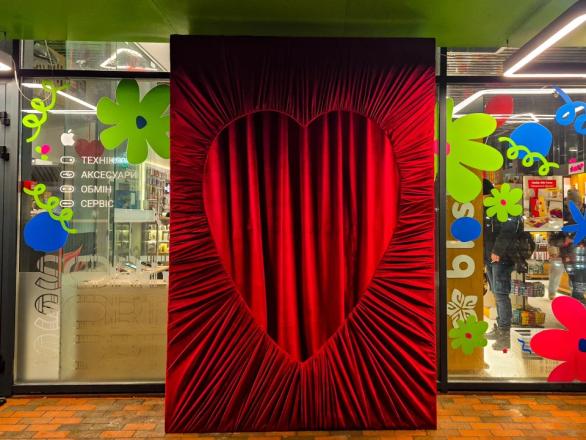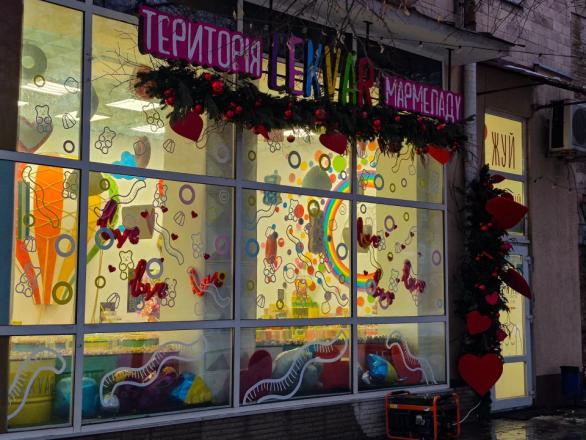 У Сумах напередодні Дня святого Валентина на вітринах магазинів і кав’ярень з’явилися тематичні фотозони та святковий декор.