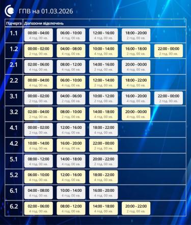 Обмеження застосовуються відповідно до обсягів, визначених національною енергетичною компанією «Укренерго». Причиною дефіциту в енергосистемі залишається збройна агресія росії проти України. Енергетики попереджають, що протягом доби графіки можуть змінюватися залежно від поточної ситуації в мережі.
