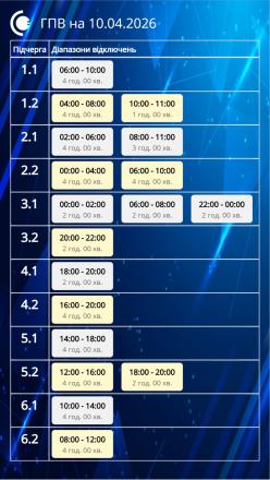 У п’ятницю, 10 квітня, на території Сумської області продовжуватимуть діяти графіки погодинних відключень електроенергії.