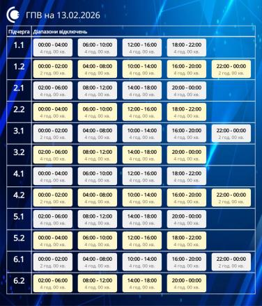 «Сумиобленерго» оприлюднило графіки погодинних відключень на 13 лютого