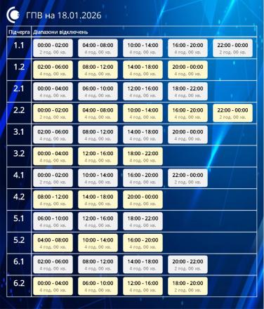 Обмеження застосовуються відповідно до обсягів, визначених національною енергетичною компанією «Укренерго». Причиною дефіциту в енергосистемі залишається збройна агресія росії проти України. Енергетики попереджають, що протягом доби графіки можуть змінюватися залежно від поточної ситуації в мережі.