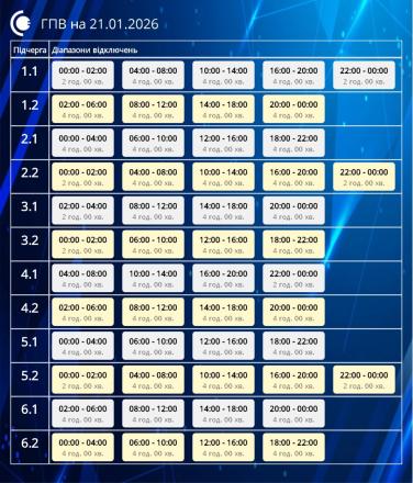 У середу, 21 січня, на території Сумської області продовжуватимуть діяти графіки погодинних відключень електроенергії.