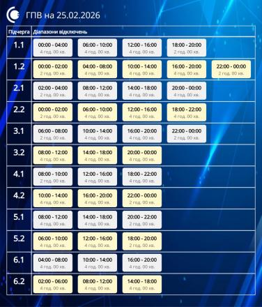 Обмеження застосовуються відповідно до обсягів, визначених національною енергетичною компанією «Укренерго». Причиною дефіциту в енергосистемі залишається збройна агресія росії проти України. Енергетики попереджають, що протягом доби графіки можуть змінюватися залежно від поточної ситуації в мережі.