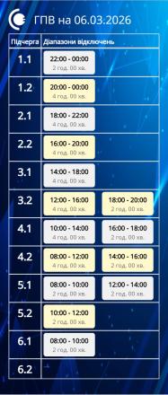 Обмеження застосовуються відповідно до обсягів, визначених національною енергетичною компанією «Укренерго». Причиною дефіциту в енергосистемі залишається збройна агресія росії проти України. Енергетики попереджають, що протягом доби графіки можуть змінюватися залежно від поточної ситуації в мережі.Реклама:Реклама:Реклама: