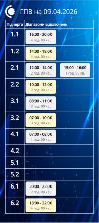 Обмеження застосовуються відповідно до обсягів, визначених національною енергетичною компанією «Укренерго». Причиною дефіциту в енергосистемі залишається збройна агресія росії проти України. Енергетики попереджають, що протягом доби графіки можуть змінюватися залежно від поточної ситуації в мережі.Реклама:Реклама:Реклама: