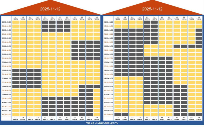 Завтра, 12 листопада, діятимуть графіки погодинних відключень. Відповідно до команди НЕК “Укренерго”: