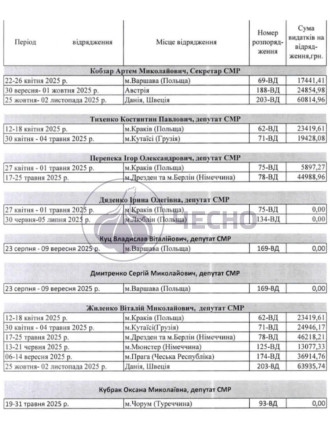 "Четверо депутатів Сумської міськради їздили у відрядження власним коштом, або витрати покривала сторона, що приймала. Також із наявних розпоряджень відомо, що обранці щонайменше двічі за 2025 рік були у відрядженні за кордон для отримання гуманітарної допомоги для міста", — написали там.