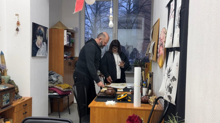 "Я побачила, що він займається традиційним китайським мистецтвом. Тут у нас представлені роботи. А я в студії також викладаю азійське традиційне мистецтво. І мені, звісно, відгукнулись і сучасне, і традиційне", — розповіла Ірина Ганаза.