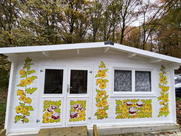 – Ми разом з дітьми мешкали у заміському будинку, де проживали українці, які переїхали під час війни, а також там приймали делегацію дітей з України. На подвір’ї цієї вілли збудували невеличкий будиночок, де проводили творчі зустрічі. І мене попросили його розписати. Я працювала до самого від’їзду, й в останній день уже малювала під ліхтарями. Мій розпис був певним нагадування для українських людей, які там проживають, про їхню Батьківщину.