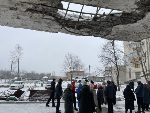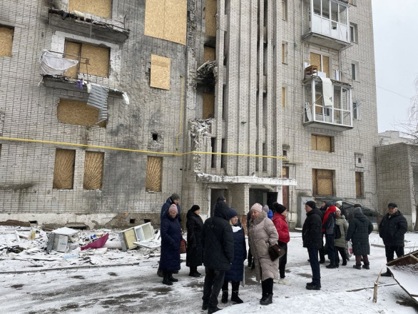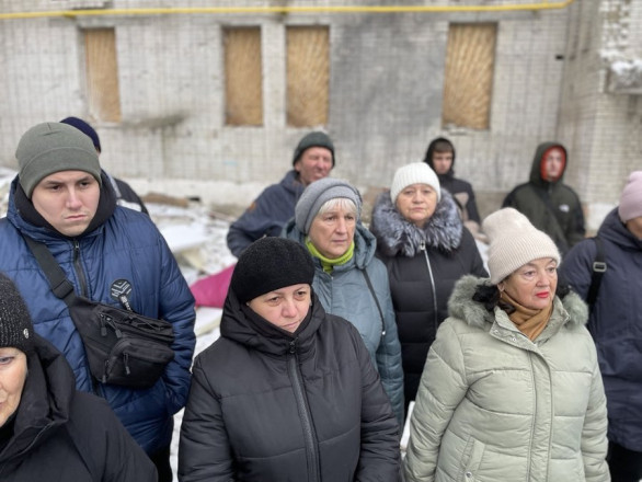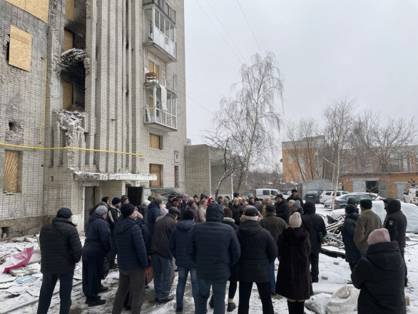 15 грудня біля пошкодженої російськими дронами дев’ятиповерхівки в Охтирці на Сумщині відбулася зустріч мешканців із представниками міської влади. Про хід ремонтних робіт люди говорили з міським головою Павлом Кузьменком та начальником управління капітального будівництва Сергієм Бондаренком.