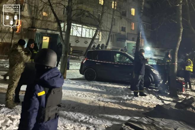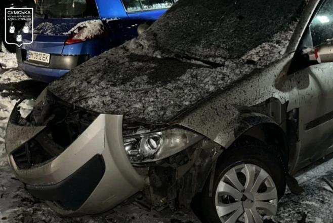 Як повідомили в Сумській міській військовій адміністрації, внаслідок атаки зафіксовані значні пошкодження багатоповерхової забудови. Попередньо, у житлових будинках вибито близько 100 вікон, також пошкоджено п’ять автомобілів сум’ян, припаркованих поблизу місця влучань.