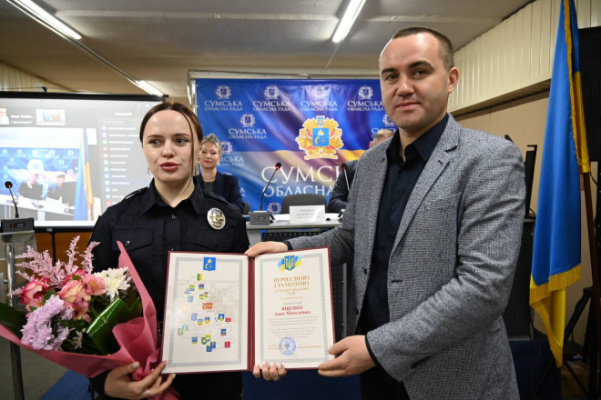 Почесною грамотою Сумської обласної ради відзначено лейтенанта поліції Анну Ященко, старшого оперуповноваженого управління протидії кіберзлочинам у Сумській області Департаменту кіберполіції Національної поліції України.