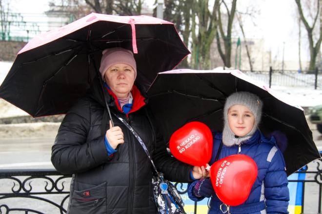 На День святого Валентина учасники заходу принесли тематичні плакати та кульки у формі сердець. Ми зібрали кілька історій тих, хто чекає.