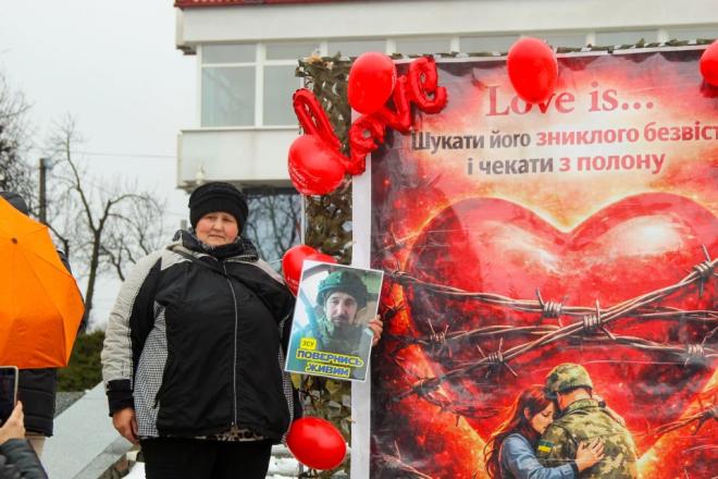Мати Романа Нагорного також доєдналась до акції. Її син зник безвісти в 2025 році поблизу населеного пункту Ямпіль на Донеччині. Жінка тримає прапор з портретом сина та повітряну кулю у формі серця з надписом: «Синку, вірю, чекаю, кохаю».