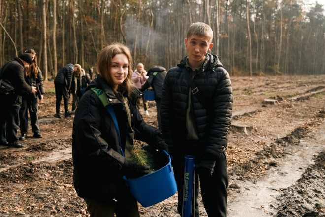 Підлітки разом з лісівниками на Тростянеччині висаджують сосну. Суспільне Суми
