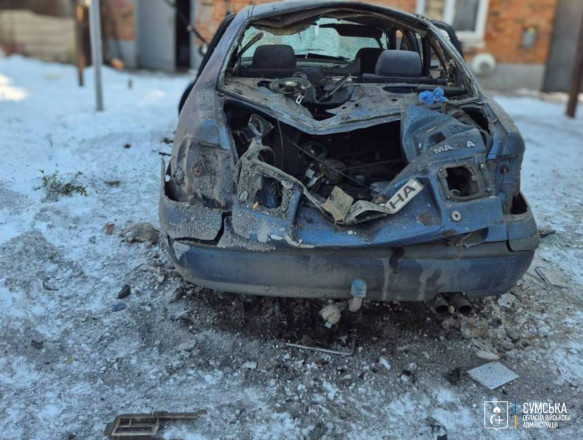 Сьогодні ж у Стецьківському старостаті російський дрон прицільно атакував цивільну автівку на подвір’ї людей.