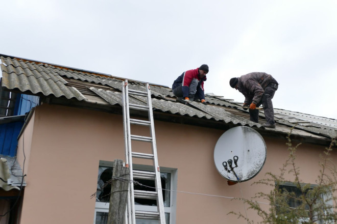 Місцевий житель Андрій Ткаченко показав наслідки: двері вибило з петель у зворотний бік, вікна повилітали, дах пошкоджено.