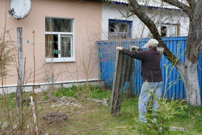 «Було десь о 12-й годині, може десь так. Я пішов у другу кімнату спати, а дружина ще біля телевізора залишилася. Чую — гуде. Потім почув вибух. Посипалося все на мене — книжки, ікони, по голові щось впало. Я до дружини. Тільки у пристінках почали ховатися — другий вибух. Кажу: ще буде. Перший був так собі, другий — сильний, а третій — сильний. На четвертий ми вже побігли у погріб, схопили тривожні сумки. Це ж вже не перший раз — навчені. Собака під ногами кричить, вищить», — каже він.