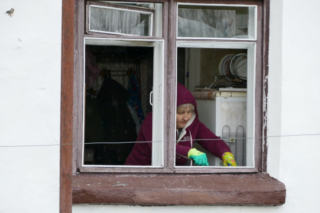 «Я лягла, а потім почула вибух, але він був глухий і далеко. А потім — не знаю, скільки хвилин пройшло — пішов удар. Коли він стався, мені донька телефонує і каже: "Мамо, буде ще". Ну, ми сиділи — у нас місце є під вішалкою, всі знають, що я під вішалкою сиджу. Нас це і врятувало. У нас все летіло. І трубу зламало, і у ванній витяжки все повиривало. Я таку брудну свою хату ніколи не бачила. В залі скло летіло і застрягало у стінку — ми сьогодні зі стінок діставали», — розповідає жінка.