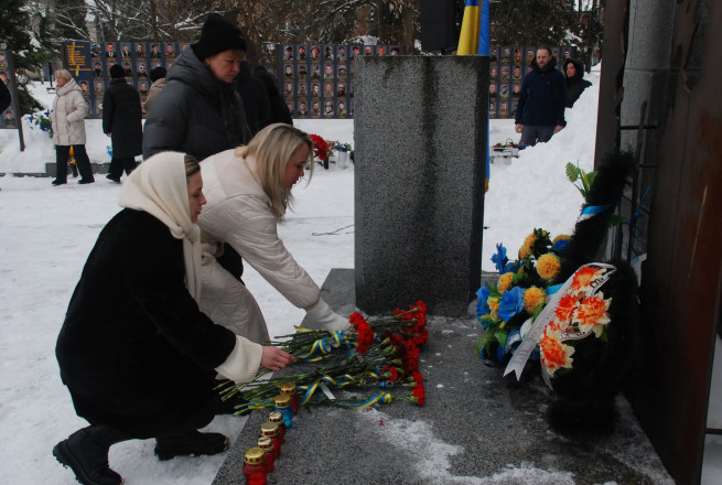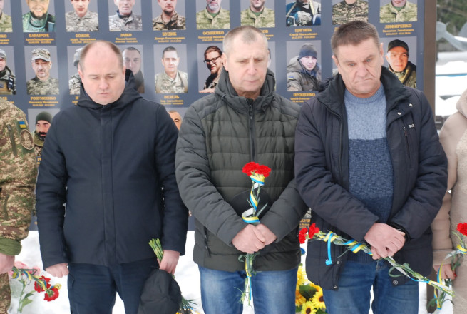 Заходи із вшанування пам’яті полеглих захисників продовжилися у парку Свободи біля меморіального комплексу. Присутні схилили голови у хвилині мовчання, поклали квіти до підніжжя пам’ятника.