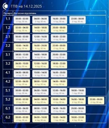 Завтра, 14 грудня, на території Сумської області діятимуть графіки погодинних відключень електроенергії.