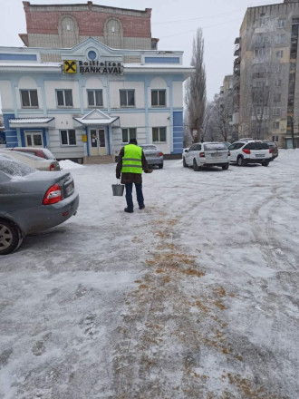 У свою чергу дорожні служби громади працюють також зосереджені на посипанні проїжджої частини та аварійно-небезпечних ділянок з метою забезпечення безпечного руху транспорту та пішоходів.