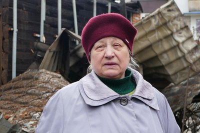 "Падає скло. Я швиденько вийшла, забрала документи, сумку, таблетки. Двері розкриті, вікна вибиті. Гараж сина горить. Його машина стояла біля воріт. Побило її сильно".