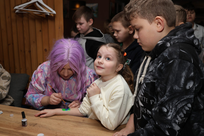 Для маленьких гостей накрили щедрі столи: дітей пригощали бургерами, картоплею фрі, піцою та напоями. За словами організаторів, діти були у захваті від частувань і атмосфери турботи.