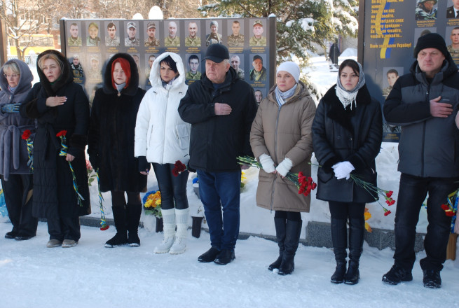 Хвилиною мовчання присутні вшанували пам’ять Героїв Небесної сотні та всіх, хто віддав свої життя у боротьбі за вільну Україну. На знак пошани поклали квіти до пам’ятника солдату.