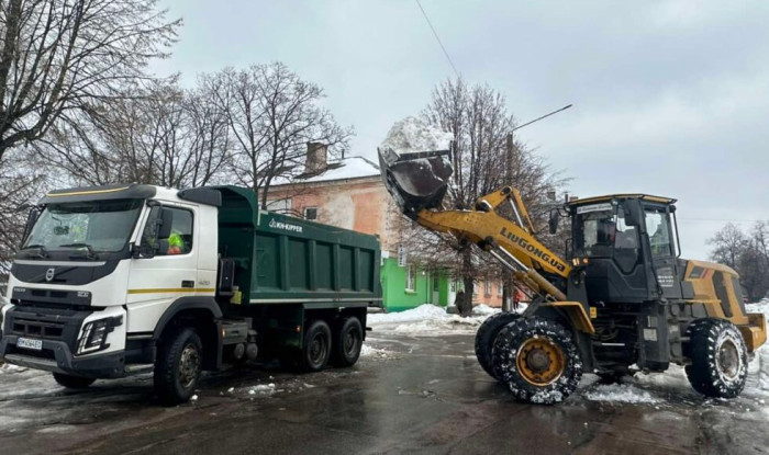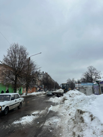 Співробітники КП “Шостка-Зеленбуд” продовжують розчищати від снігу окремі ділянки дороги вул.Свободи, яка є однією з найбільш завантажених у місті. Зокрема, аби розширити паркувальну зону біля ринку, сніг доводиться возити звідти вантажівкою.