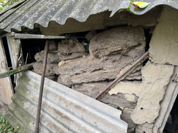 "Це ж саман, чи як називається. Солома, глина. Все, тут більше немає нічого. Зимою тепло тримає добре, а влітку прохолодно. От рубаю сокирою – його не бере сокира".