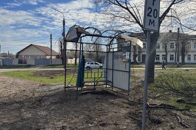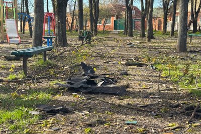 У Сумах у ніч на 28 квітня російський безпілотник влучив у сквер у Ковпаківському районі. Поруч – зупинка громадського транспорту, дитячий майданчик, навчальний заклад, будинки та магазин.
